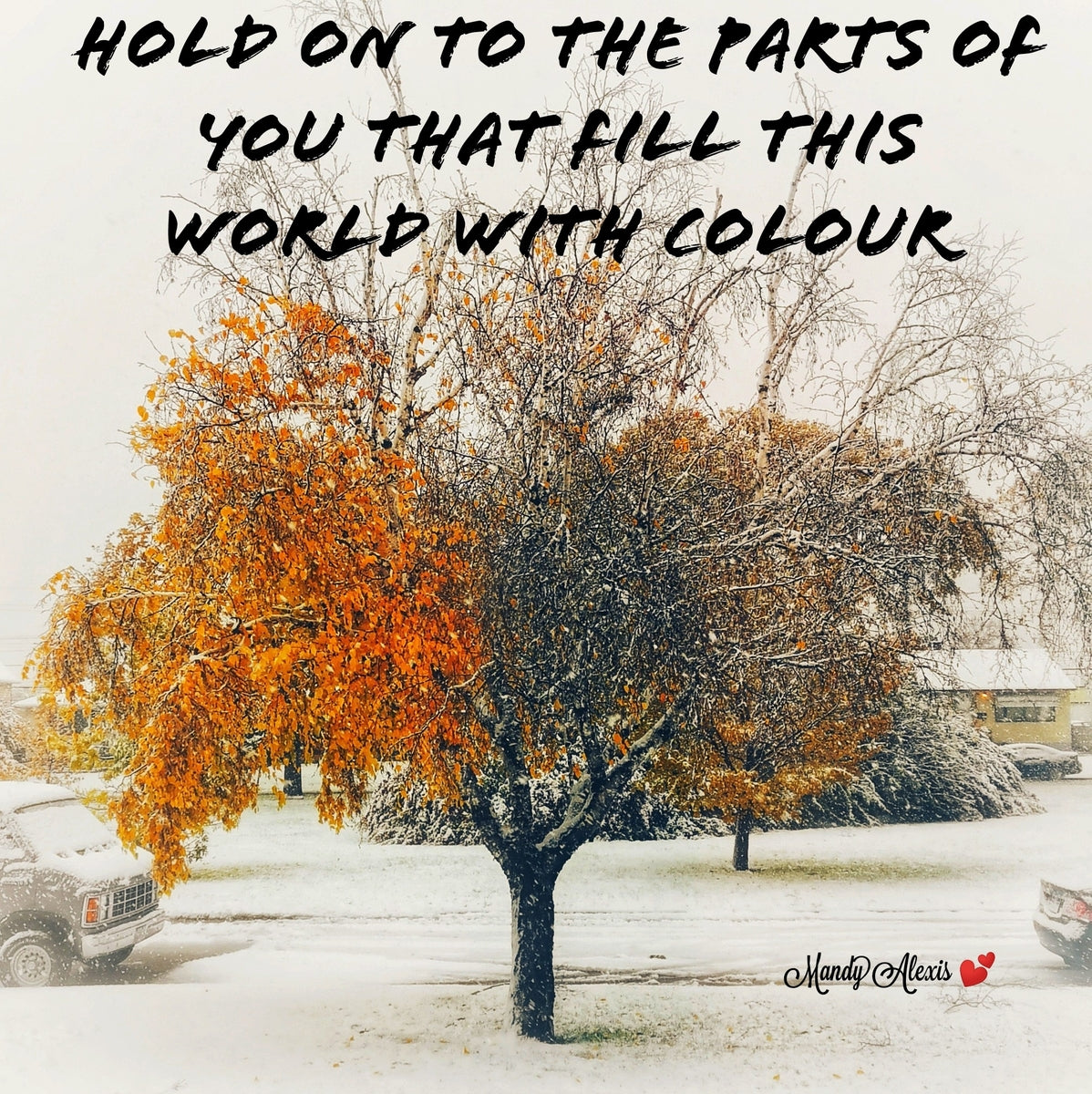 Al mirar por la ventana después de una tormenta de nieve inesperada, me quedé hipnotizado por la vista. La perfección con la que el árbol conservaba las partes que aún conservaban su colorido.