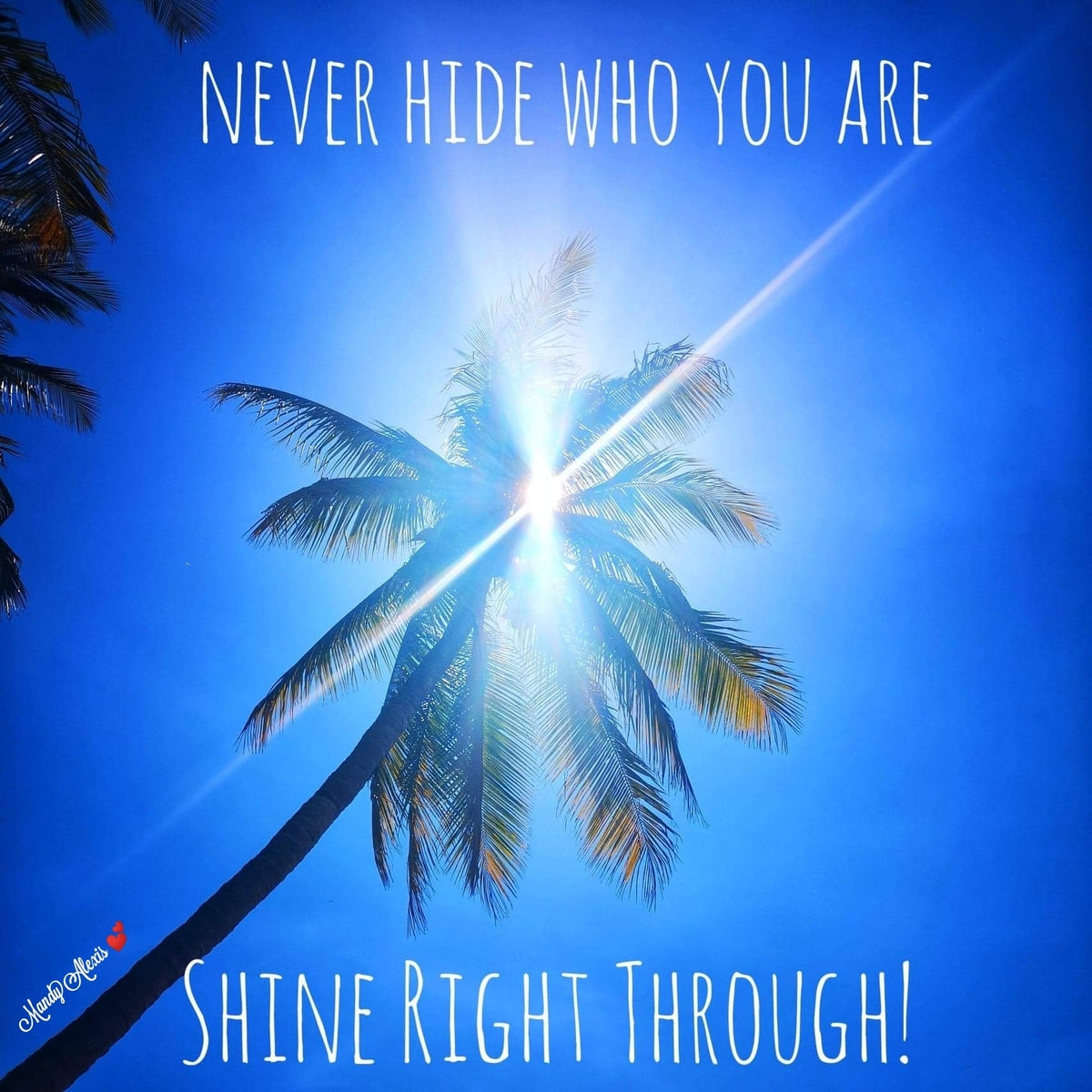 Mientras estaba tumbado en la playa, miré hacia arriba y vi el sol brillando a través de las hojas de las palmeras. Era como si me estuviera diciendo que siempre brillara a través de ellas.